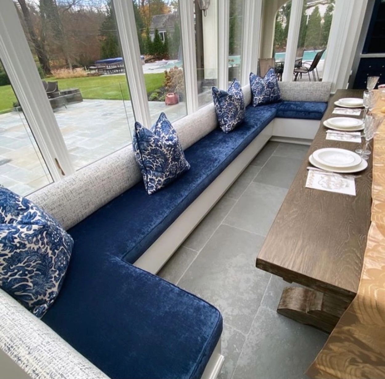 Make any window seat more functional and comfortable by adding custom pillows and a custom cushion. Many varieties of fabrics to choose from. Can be made to be removable for easy clean up.